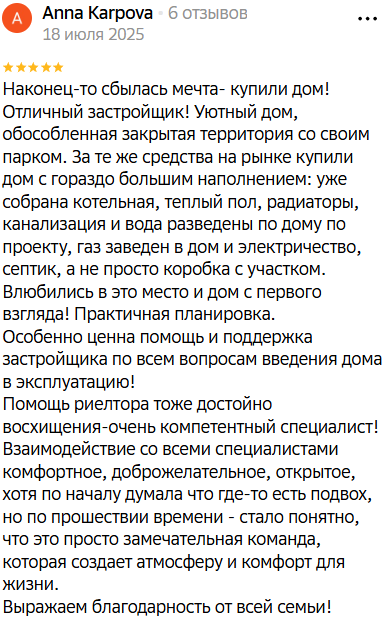 Вы можете приехать к нам на экскурсию, посмотреть готовый дом внутри и снаружи, оценить планировку, качество строительства и сам формат жизни в посёлке.